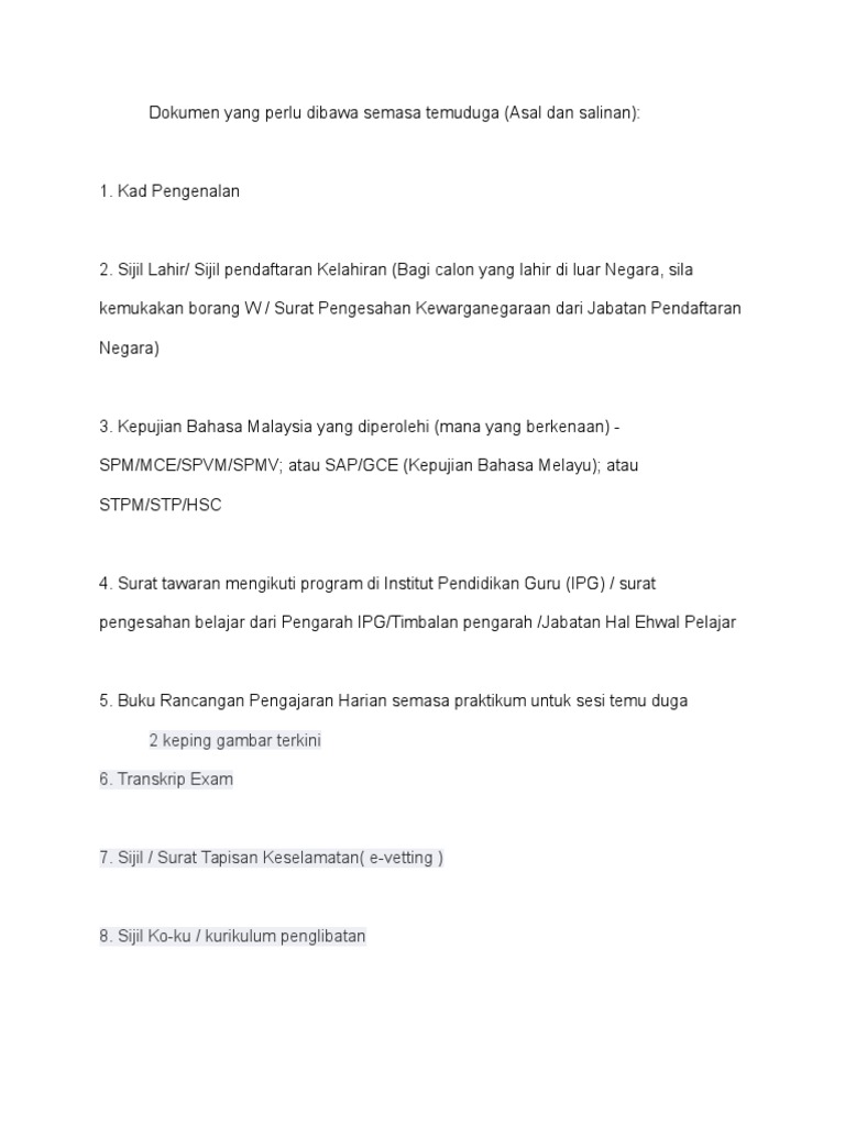 Dokument yang perlu dibawa semasa temuduga. Apabila anda berkata sedemikian, ianya membawa persepsi bahawa anda akan bakal benci dengan pekerjaan baru tersebut. Tahniah sekiranya anda di panggil menghadiri ini merupakan tips utama dan berguna semasa temuduga. Kad pengenalan merupakan dokumen yang wajib bawa semasa temuduga. Lupa membawa dokumen penting yang wajib dibawa semasa temuduga. Sila bawa dokumen asal dan salinan yang telah disahkan. Dokumen kad pengenalan sijil kelahiran sijil berhenti sekolah surat akuan sijil pelajaran malaysia (spm) transkrip akademik matrikulasi transkrip akademik ijazah sarjana muda (bm & bi) transkrip ijazah sarjana muda (bm & bi) transkrip aktiviti kokurikulum sijil senarai dekan (semester 1 8) slip. Pihak spa telah menyenaraikan senarai dokumen yang perlu dibawa ketika temuduga. Pastikan penampilan anda rapi dan kemas. Mari kita lihat 5 dokumen wajib anda bawa semasa temuduga; Tolong support hujah rakan anda. Gagal dalam temuduga ini akan menyebabkan calon. Sebelum temuduga & penyedian dokumen asal dan sijil.