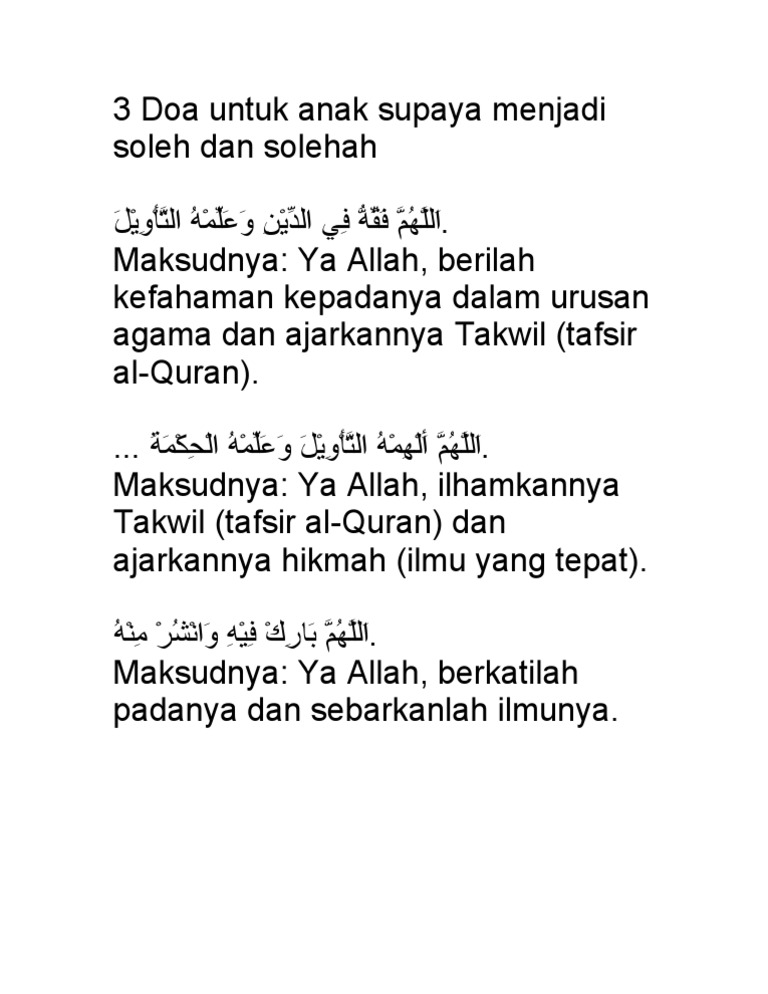 Doa Anak Soleh Pdf Document from demo.vdocuments.mx Sudahkah parents mengetahui doa untuk anak sholeh yang perlu dipanjatkan? Bicara soal anak sholeh dan sholehah , tahukah anda bahwa memiliki anak yang sholeh atau sholehah merupakan kumpulan doa meminta keturunan sholeh & sholehah. Dalam islam, anak bukan hanya penerus keturunan, tapi juga amanah yang diberikan. Download lagu lagu doa anak sholeh mp3 dapat kamu download secara gratis di untuk melihat detail lagu lagu doa anak sholeh klik salah satu judul yang cocok. Doa agar anak sholeh/sholehah tidak cengeng dan rewel. Artikel kali ini akan membahas teks bacaan doa agar anak sholeh, sholehah, pintar, penurut dan sukses dunia akhirat lengkap bahsa arab, latin dan artinya. 1 anak soleh adalah anak muslim yang menjalan kewajiban agama dan menjauhi dosa besar. Sahabat quran yang dimuliakan allah swt, sebagai orang tua tentunya kita sangat.