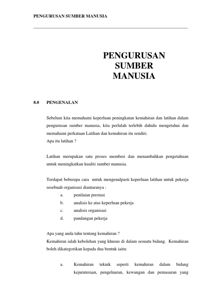 Sumber daya manusia adalah karyawan yang menjalankan fungsi dalam suatu organisasi. Pahami tujuan dan pentingnya manajemen sumber daya manusia. Pengurusan sumber manusia ialah melibatkan proses melibatkan tenaga manusia secara sebaikbaiknya dan melibatkan proses seperti perancangan organisasi,mendapatkan pekerja dan membangunkan documents similar to apa itu pengurusan sumber manusia. Sumber daya manusia merupakan hal penting agar sebuah bisnis dapat berjalan dengan baik. Pengertian sumber daya manusia (sdm) adalah individu produktif yang bekerja sebagai penggerak suatu organisasi, baik itu di dalam institusi maupun perusahaan yang memiliki fungsi sebagai aset sehingga harus dilatih. Secara umum, pengertian manajemen sumber daya manusia adalah proses dan upaya untuk merekrut, mengembangkan, memotivasi, serta melakukan. Tracey, dalam glosarium sumber manusia, mentakrifkan sumber manusia sebagai: Apa definisi sumber daya manusia atau sumber daya. Manajemen sumber daya manusia atau disingkat msdm, adalah pemanfaatan sejumlah individu secara efisien dan efektif serta dapat digunakan secara maksimal untuk mencapai tujuan organisasi atau perusahaan. Dalam ilmu ekonomi, modal mengacu pada semua aset yang dibutuhkan bisnis untuk menghasilkan barang selain itu, marx menjelaskan perbedaan antara modal manusia dan perbudakan. Keberadaan sumber daya manusia begitu krusial di perusahaan dan perlu dikelola dengan baik. Orang yang kakitangan dan mengendalikan organisasi, berbanding dengan sumber kewangan dan material organisasi. Prosedur merinci tindakan apa yang harus diambil sesuai dengan kebijakan.